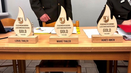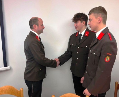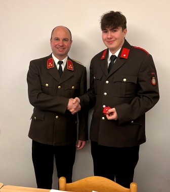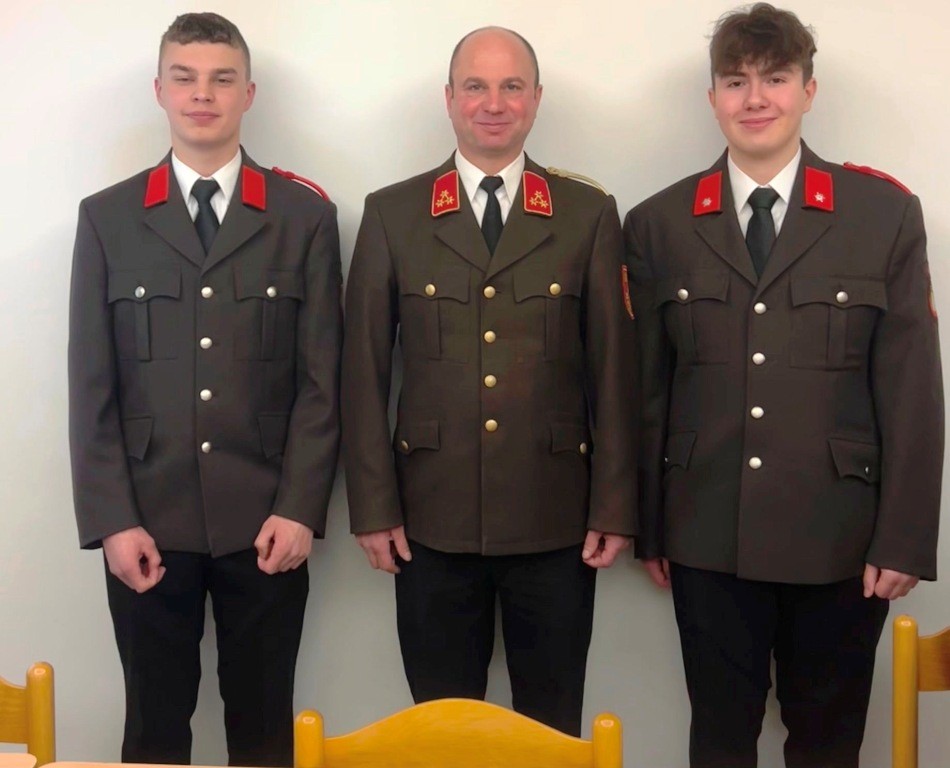 Die im Jahr 2025 von der Feuerwehrjungend überstellten Mitglieder Julian Thaler und Lukas Thaler wurden durch HBI Harald Thaler angelobt und zum Feuerwehrmann befördert.