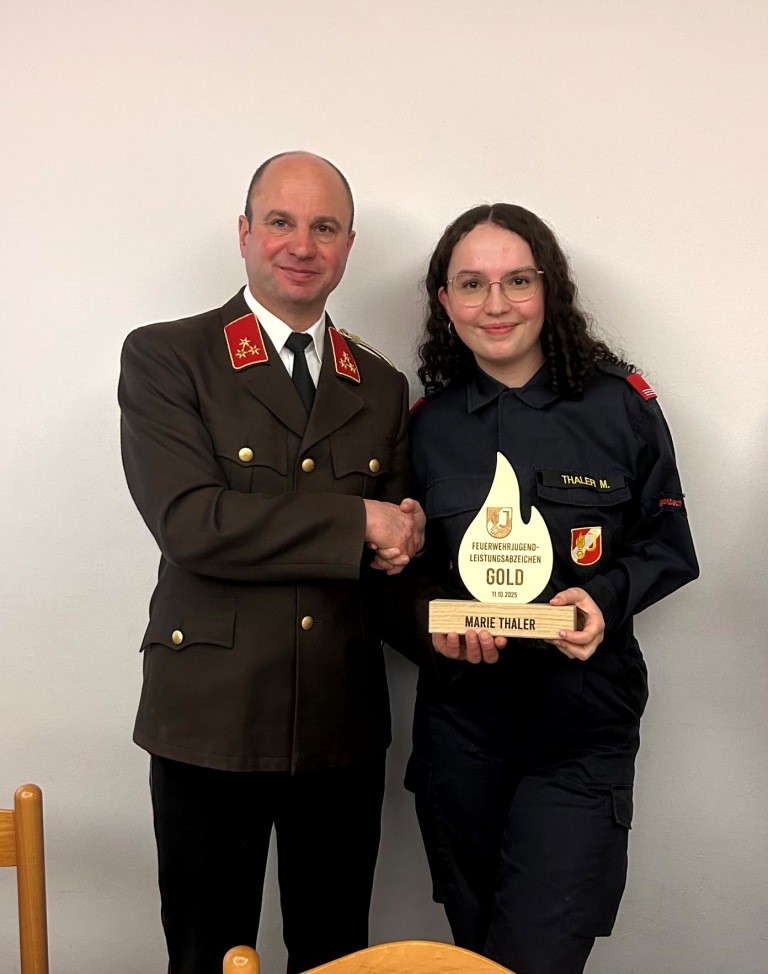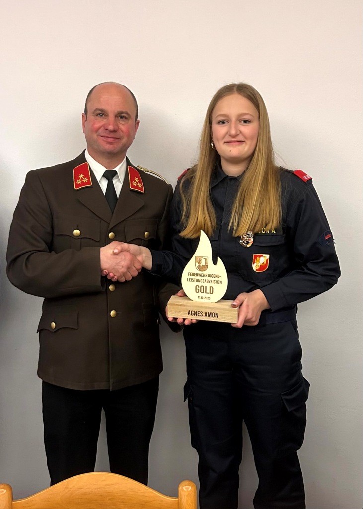 für das Feuerwehrjugendleistungsabzeichen in Gold überreicht.